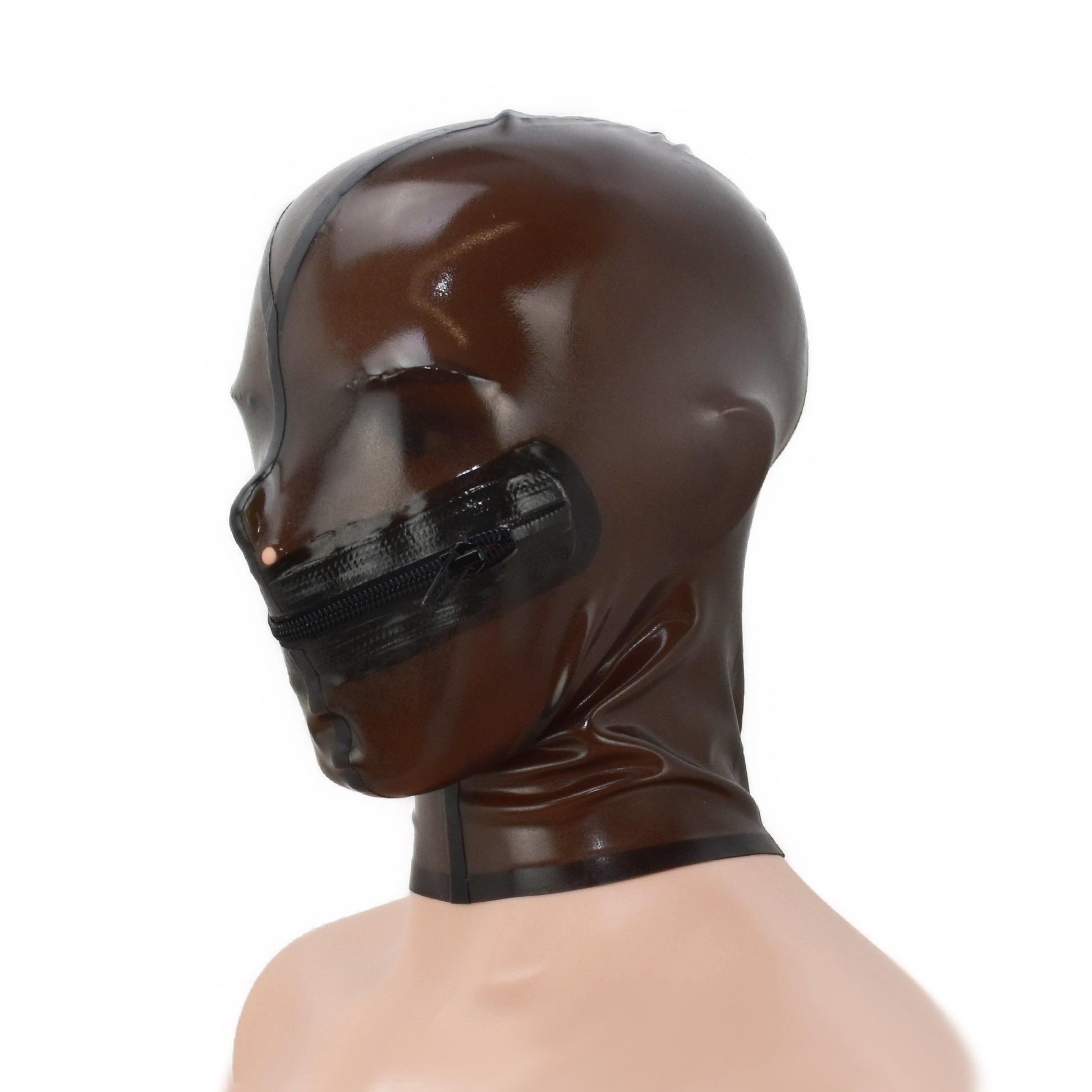 Produktbeschreibung: Transparente Latex-Maske mit Reißverschluss für Bondage