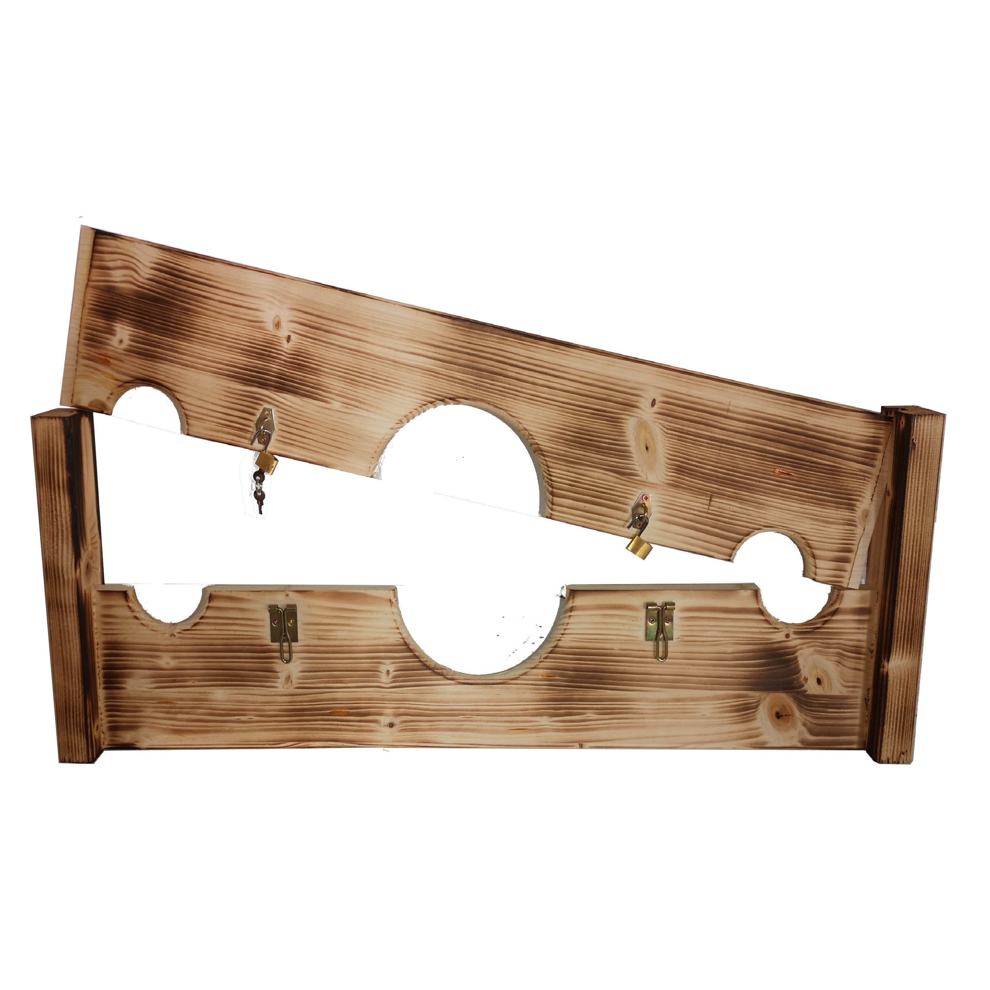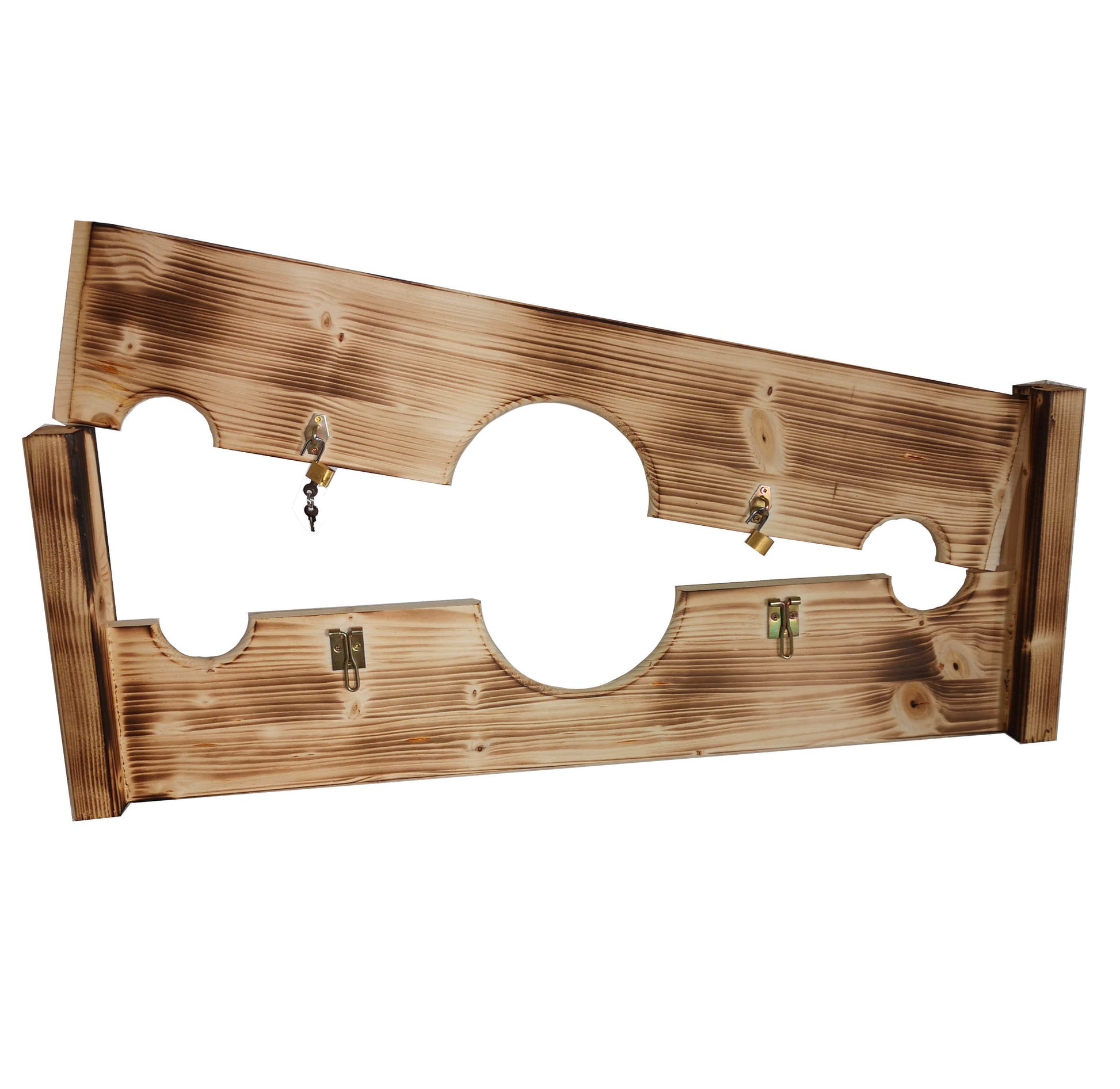 Artikelbeschreibung: Pranger Mittelalter, leichte Bauart – Abschließbar mit Verzierung für Männer und Frauen